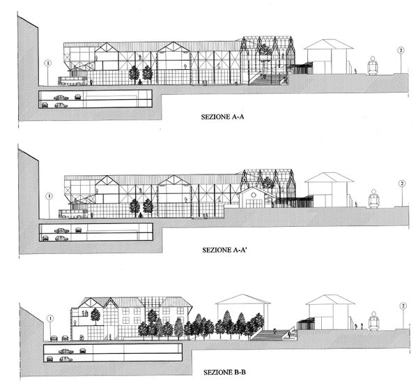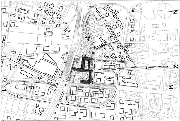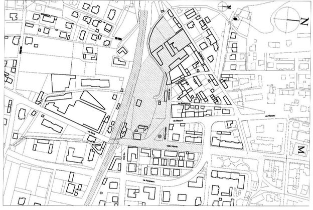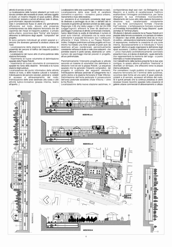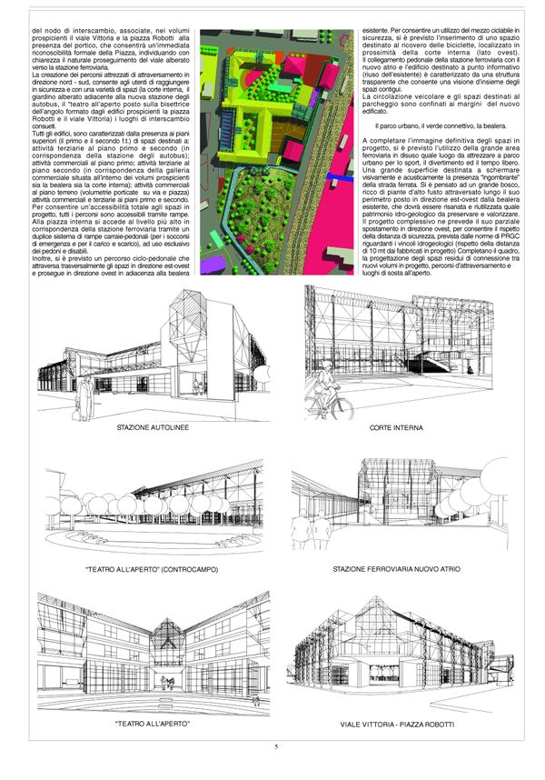 I vuoti urbani, assumono nel tempo, una configurazione tipica delle aree marginali di confine che, per consuetudine, si tende a non progettare, destinandole genericamente ad aree verdi. In questo caso, la presenza della stazione ferroviaria non assume connotati semantici e formali rilevanti. Per le caratteristiche del sito sopradescritte, l'area in oggetto si configura in modo esemplare quale nodo di interscambio per eccellenza: luogo urbano posto in corrispondenza di incroci significativi tra linee ferroviarie, automobilistiche e parcheggi. A seguito delle analisi preliminari relative alle funzioni in atto sul nodo di intercambio, le carenze presenti e le possibili alternative di organizzazione e ammodernamento, si è pervenuti all'individuazione di alcuni principi insediativi delle attività e del loro organizzarsi all'interno di un disegno urbano coerente.